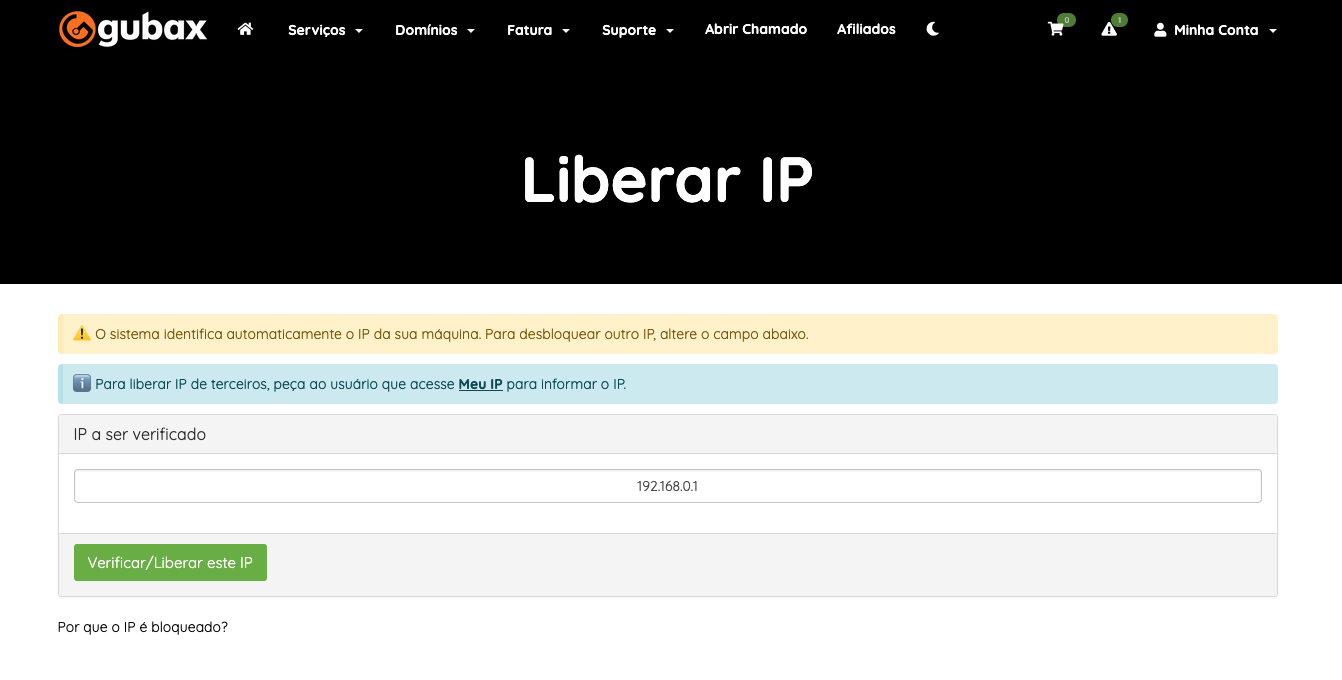 Atendendo aos pedidos de nossos clientes, agora é possível desbloquear IPs de forma rápida e prática diretamente pela Área do Cliente. A novidade traz mais comodidade e agilidade, dispensando envio de chamado no Suporte Técnico ou uso de ferramentas dentro do WHM para revendedores.