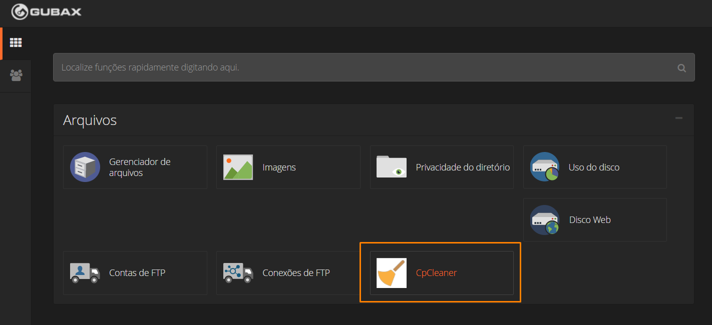 1 - Primeiramente acesse o cPanel de sua conta. Feito isso localize o botão "CpCleaner". Veja a imagem abaixo.