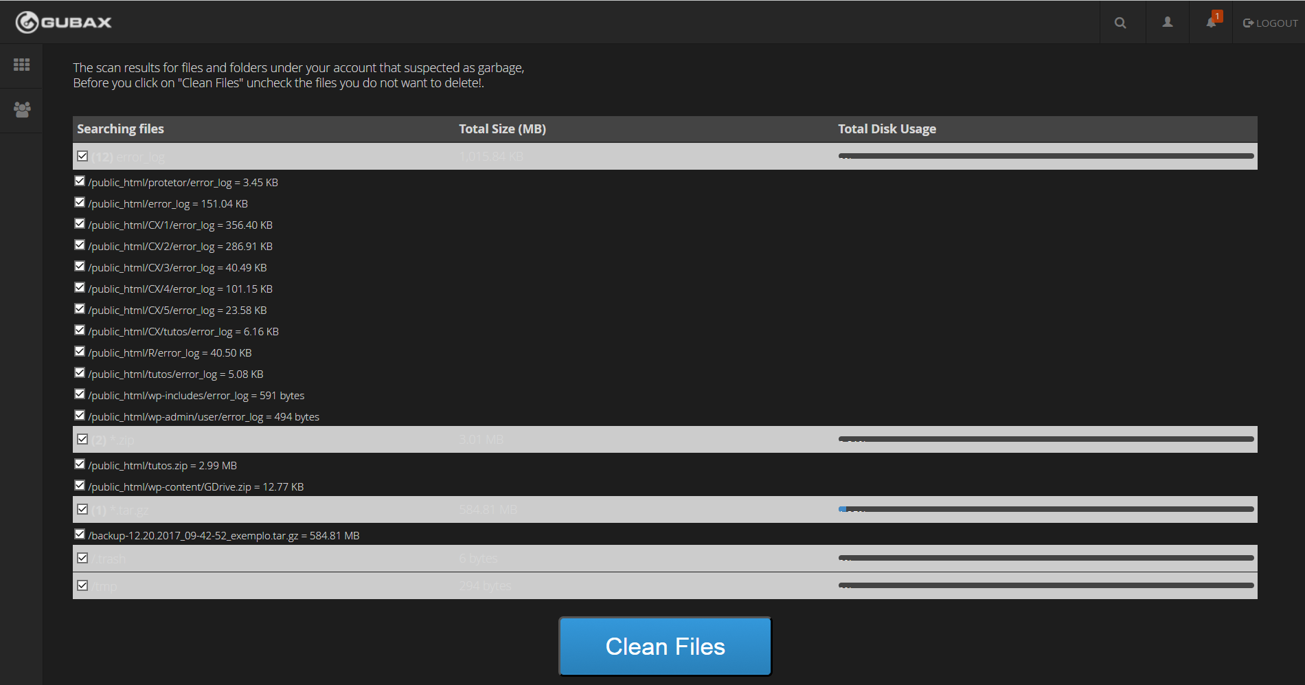 6- Pronto, você acaba de fazer uma limpeza em seus arquivos, assim aumentando mais armazenamento em sua hospedagem.