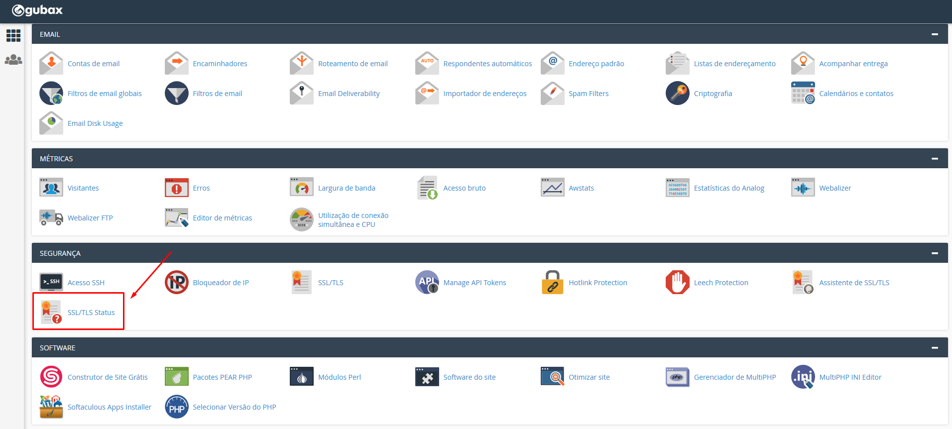 1 - Acesse o cPanel e localize a opção SSL/TLS Status.