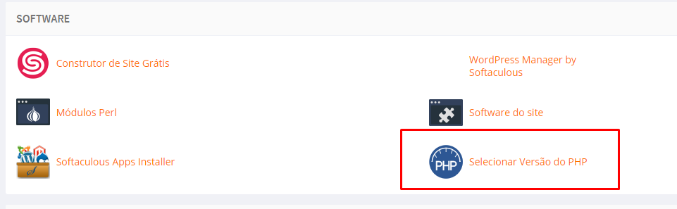 Em seguida, clique na opção Selecionar Versão do PHP, assim como na imagem abaixo: