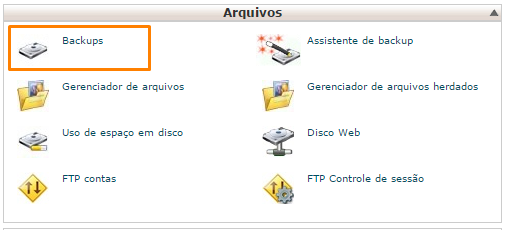 Acesse o cPanel de seu site. Desça até Arquivos e clique em "Backups".