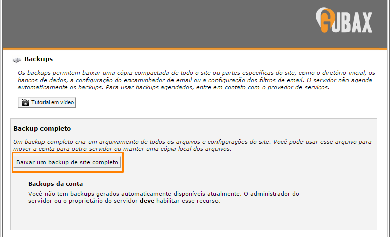 Aqui você irá clicar em "Fazer Download ou Gerar um Backup de Website Completo".